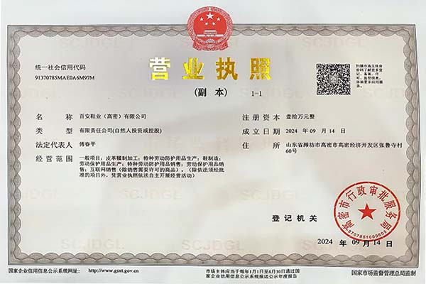 百安鞋业(高密)有限公司营业执照